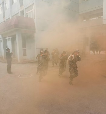 应急疏散逃生演练根据工作预案在北苑、西苑、南苑三个宿舍区域同时展开:释放火灾模拟烟雾,警报声响起,迅速打开所有消防通道大门,引导学生正确、有序、快速撤离至指定的安全地带,负责人总结逃生过程中存在的问题。灭火技能培训在老驾校场地分批次进行:讲解防范火灾知识、常见灭火器的使用方法及灭火注意事项,学生分组逐一使用灭火器灭火,引导学生撤离模拟火场。