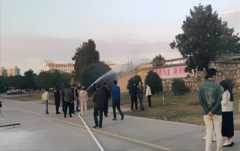 在活动现场,保卫处工作人员分别对过滤式消防自救呼吸器、灭火毯、灭火器、水带等常用消防器材的使用方法和注意事项进行了详细讲解和示范演示,参训人员随后在工作人员的指导下使用灭火器和消防水带进行灭火实战演练。