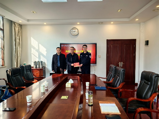会上,校警双方就电动车规范出行、机动车技术服务研究、困难学生兼职等事项进行富有成效的探讨。同时,谢主任向贝书记送上感谢信,代表交警支队对前期学校给予的支持表示感谢。(图/文 保卫处;审核/吕凤亚;编辑/张倩茹)